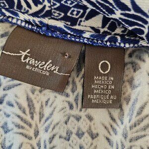 Chico's Travelers Open Front Draped Jacket, Size 0 (Small) Pineapple Print Blue