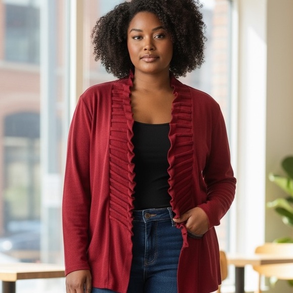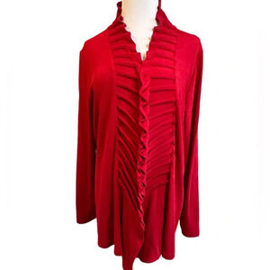 Chico’s Travelers Open Front Red Ruched Ruffled Cardigan Jacket