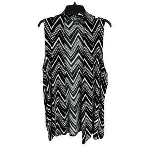 Chicos Travelers Open Front Vest Womens 2/Large Black Chevron Stripe Stretch Zig Zag. Excellent pre-owned condition with no flaws found. Measurements in photos. Chicos size chart in photos. Fast shipping!