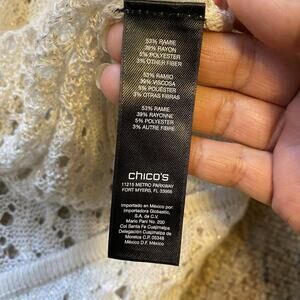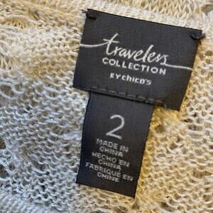 Chicos Travelers Open Knit Tunic Top Sz 2/M Ivory Silver Beach Largenlook Boho