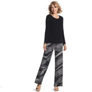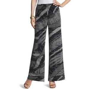 Chico's Travelers Palazzo Pants 3 XL Classic Printed Wide Leg Pull On Navy White