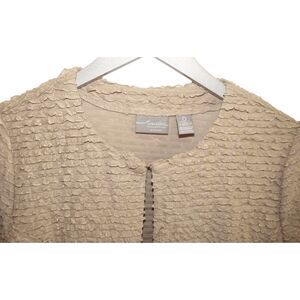 Chico's Travelers Ruffle Jacket Cardigan Tan/Gold Textured Open Front