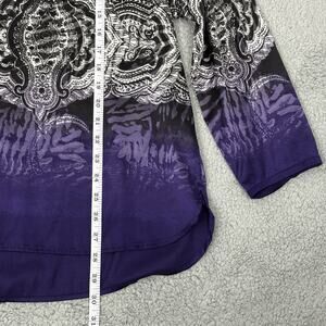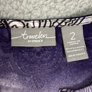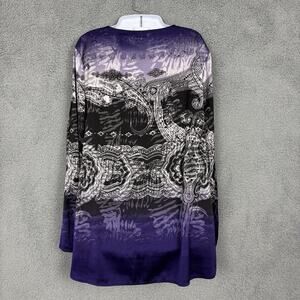 Item Detail: Chicos Travelers Top Satin Purple Multicolor V Neck Long Sleeve Tunic size Large