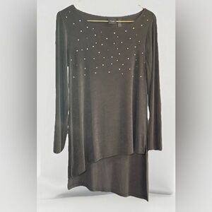 Chicos Travelers Size 0 Small 4 Gray Top Embellished Asymmetrical Hem Slinky