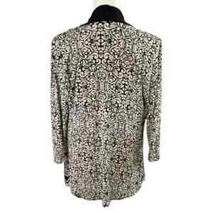 Chicos Travelers Size 0 US S Open Front Jacket Cardigan Slinky Black Cream Print