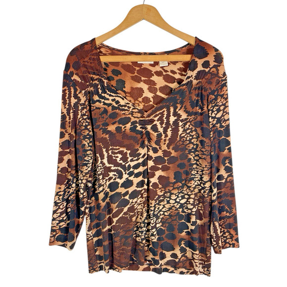 Chicos Travelers Size 1 / Medium Top Animal Print Y2K Cinched Knit Mob Wife