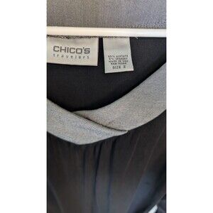 Chico’s Travelers Size 2 Black Tunic Top Gray Trim V-Neck Stretch 3/4 Sleeve