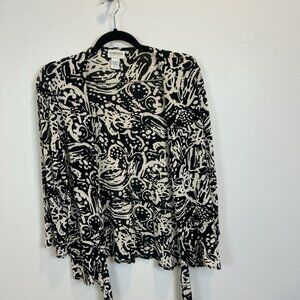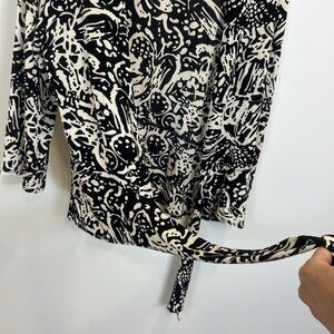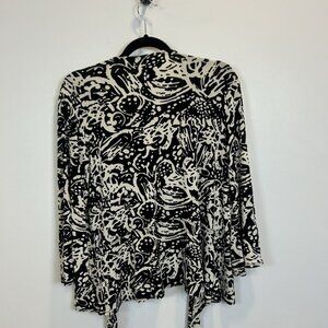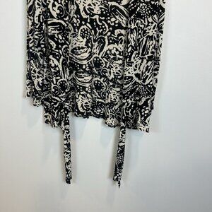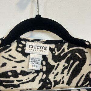 Chico's Travelers Size 2 Large tie Front Slinky Cardigan Top Black white Stretch