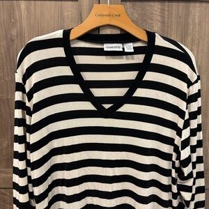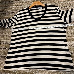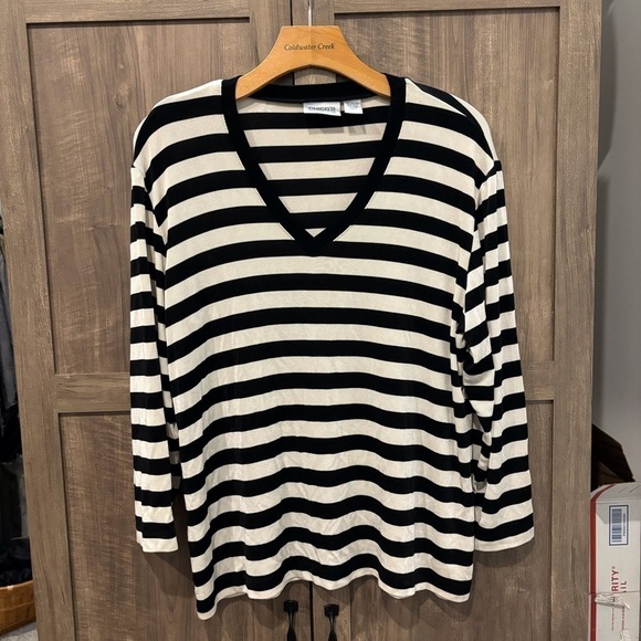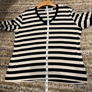 Chico's Travelers Size 3 (XL) Black and White Stripe Top V Neck