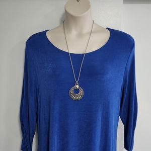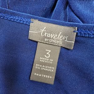 Chico's Travelers Size 3 (XL) Cobalt Blue Stretch Knit 3/4 Shirred Sleeve Tunic