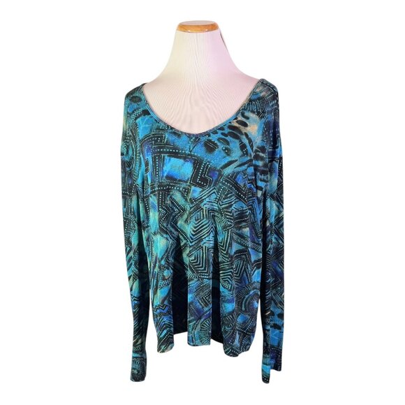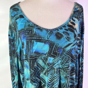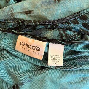 Chico's Travelers Size 3 (XL) Thin Slinky Knit Long Sleeve Top Abstract Teal