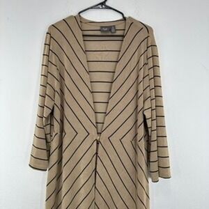 Chico's Travelers Size XL 16 Open Front Duster Cardigan Striped Tan Black