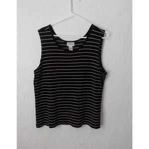 Chicos Travelers Sleeveless Tan Top Black Tan Stripes Women size 3 (XL) Stretch