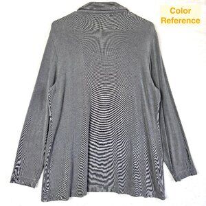Chicos Travelers Slinky Collared Open Front Longline Stretch Cardigan Womens 2 L 12-14 Gray