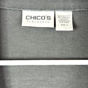 Chico's Size: 2 = L 12-14 Color: gray Neckline: lapel collar Closure: open front Sleeves: long Pockets: no pockets Hem: straight Stretchy & comfy No tears, no stains, in great condition