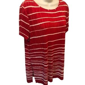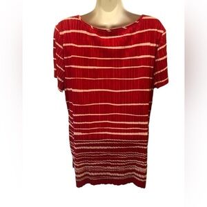 Chico’s Travelers Slinky Crinkle SS Top Sz. 2/M (12) Red White Stripe Career Layering