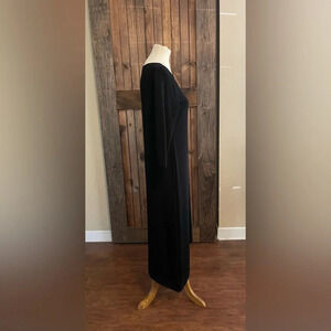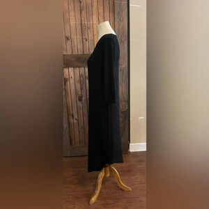 This listing is for a preowned Chicos Travelers Classic Dress Asymmetrical Hem Black Wrinkle Free Size 0 Small. The condition is great, I see no holes or stains. Please see photos for details as they are part of the description.