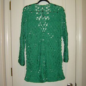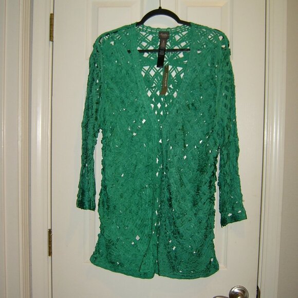 Open front design. Open braided weave. 3/4-Sleeves. One hook and eye closure, machine washable. The size is XL (3) or size 16. There is stretch. Please view the photos for details. Smoke and pet free home.