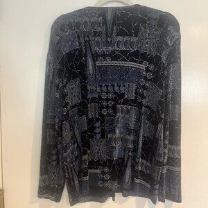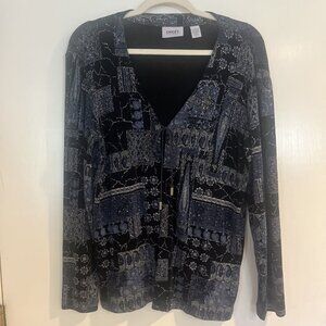 Chico’s Travelers Sz 2 US Sz 12 Jacket Black Glitter Metallic Long Sleeve Tie