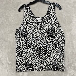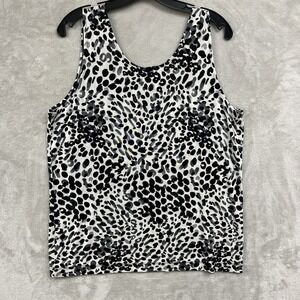 Chico's Travelers Tank Top 3 XL Camisole Black Animal Print Slinky Shell Printed