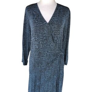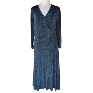 Chico's Travelers Teal & Black Faux Wrap Style Slinky Knit Maxi Dress 2 Large