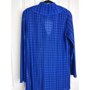 This chic Chico's Travelers Textured Crinkle Jacket features a striking asymmetrical zipper design in vibrant cobalt blue, perfect for adding a pop of color to any outfit.