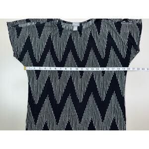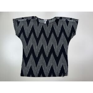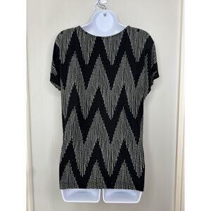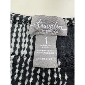 Chicos Travelers Top Size 1 Medium Black Gray Chevron Travel Career Resort CEO