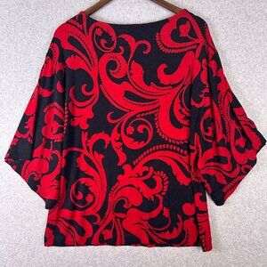 Chico's Travelers Top Women Large Black Red Scroll Print Kimono Sleeve Cocktail
