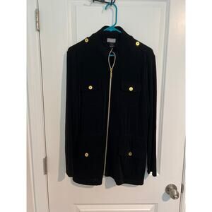 Chico’s Travelers Utility Jacket – Size 2 (L/12) – Black Cross Dye