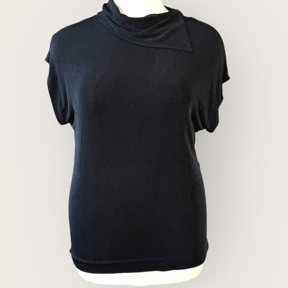 Chico's Travelers Black Cap Sleeve Asymmetric Cowl Neckline Slinky Top Stretchy