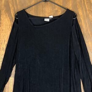 Chicos Travelers Women Blouse Black Shoulder Cut Outs Asymmetrical Tunic 2 (L)