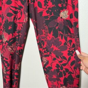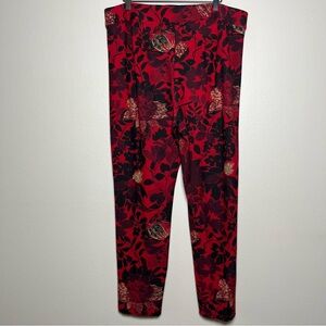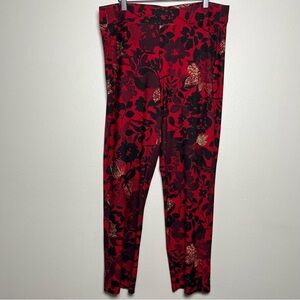 Chico's Travelers Women Pants 14 Wine Red Floral Romantic Pull On 2.5 Regular