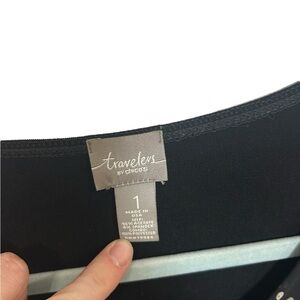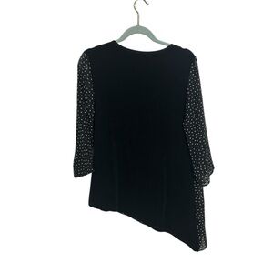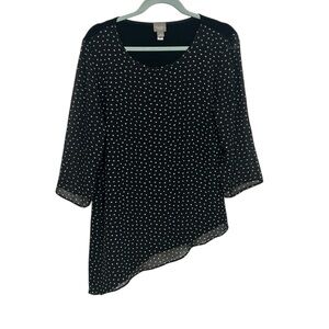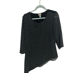 Chico’s Travelers Womens Black & White Polka Dot Asymmetrical Knit Top Artsy M