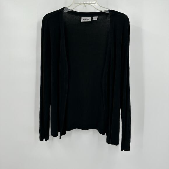 Chicos Travelers Womens Cardigan Size 3 US XL Black Open Front Minimalist Lagom