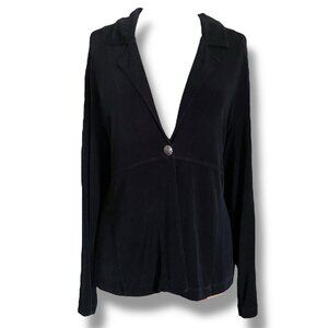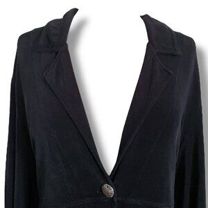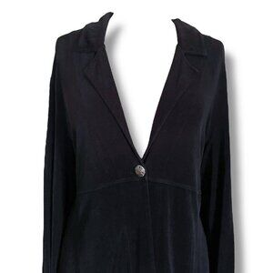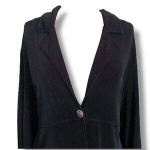 Chicos Travelers Womens Cardigan Sz 2 Large Black Slinky Knit Silver Boho Button