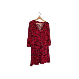 Chicos Travelers Womens Medium Midi Dress Red Black Floral Stretch Knit comfy
