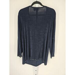 Chico's Travelers Women's Navy Blue Slinky Keyhole Bead Tunic Knit Blouse Size 3