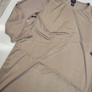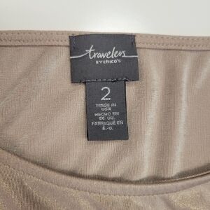 Chico's Travelers Womens Size Large Beige Gold Shimmer Asymmetrical Tunic Top