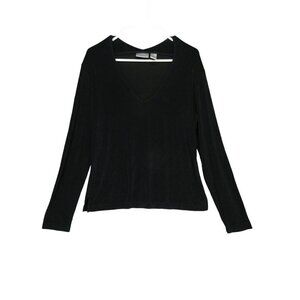Chico's Travelers Womens Slinky Long Sleeve Blouse Deep V Neck Size 2 (L/12)