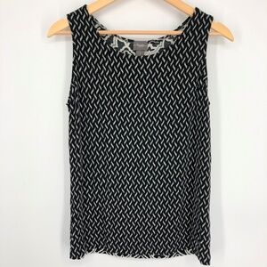 Chicos Travelers Womens Tank Top Size Medium 8 Layering Slinky Knit Black White Multiprint