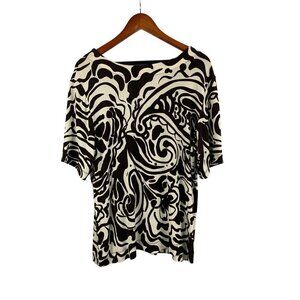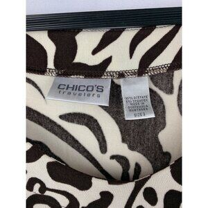 Chicos Travelers Womens V-Neck Brown & Cream Abstract Top Size 3 Acetate/Spandex