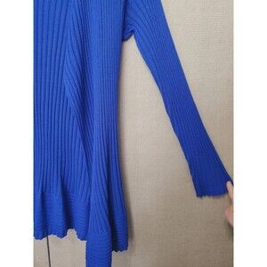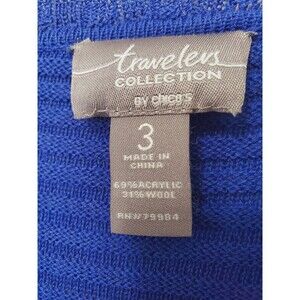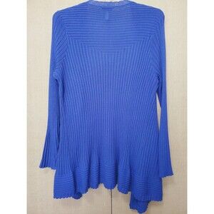 This is a Chico's Travelers Wool Blend Blue Ribbed Knit Open Front Long Cardigan Sz 3 (XL)