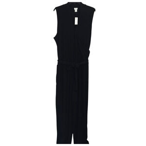 New with tag Chico's Travelers wrap jumpsuit in women's size 4 - equivalent to a size XXL or 20/22. Soft, wrinkle resistant fabric. Easy wear and easy care. Surplice v-neckline. Elastic waist with a self tie belt. Sleeveless. Side pockets.