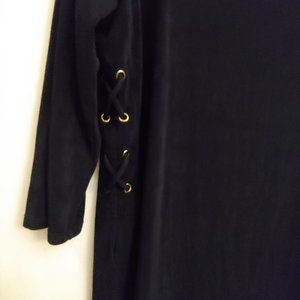 Chico's Travelers black Lace-Up Side slinky knit Top 2 asymmetrical hemline