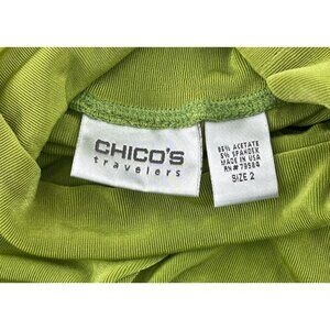 Chicos Travelers size 2 Women's Large Turtleneck Short Sleeve Blouse Green