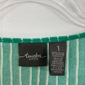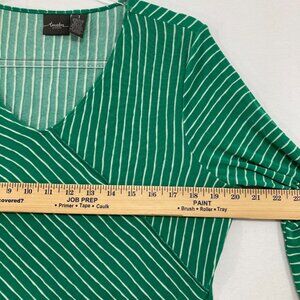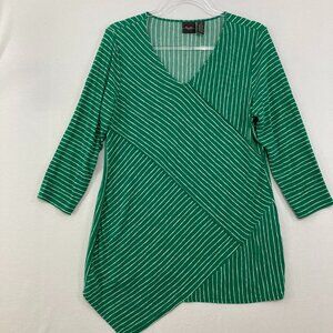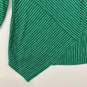 Chico's Travelers sz Medium/1 Kelly Green Striped Asymmetric Slinky Knit Blouse
