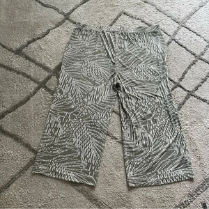 Chico’s Travelers wide leg pull on pants sage green cream printed crop length