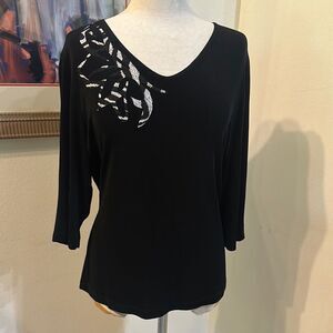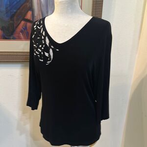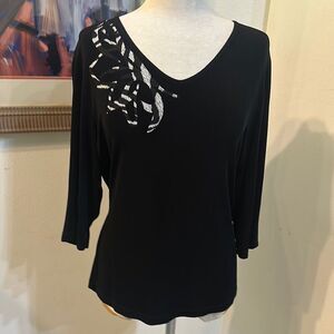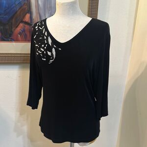Chico’s Travelers Elegant Black Top w/ White Embellished Design Size 2-Large
