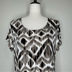 Chico’s Travelers Geometric Metallic Print Scoop Neck Short Sleeves Top