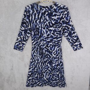 Chicos Travellers Midi Dress Faux Wrap Sz 2/L Geometric Print 3/4 Sleeve Stretch